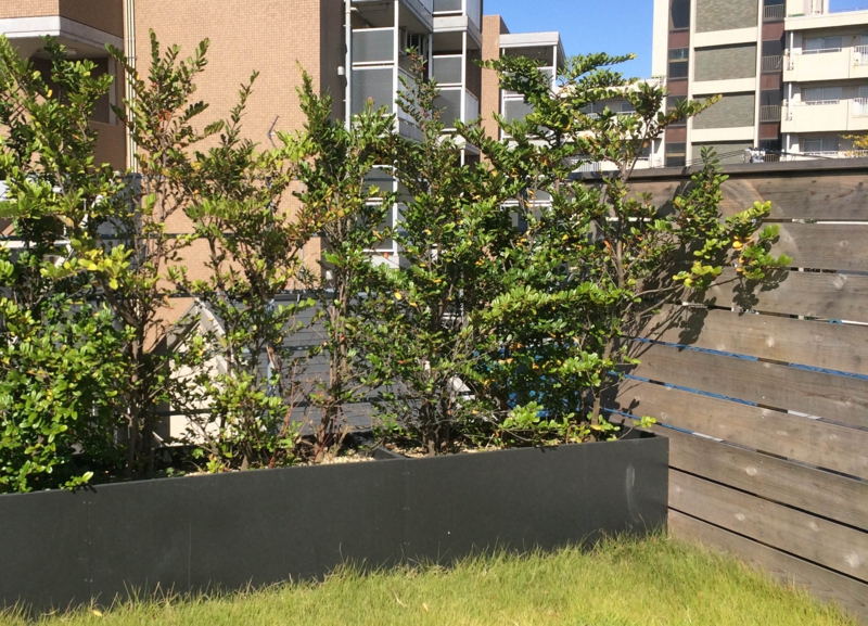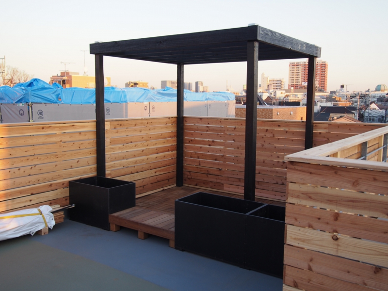 4世帯家族の為の屋上庭園。