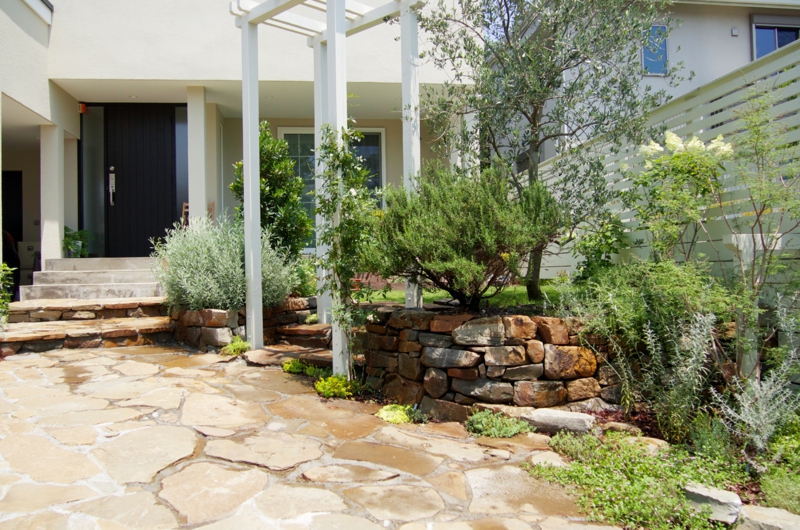 敷地の個性を活かすため、ロックガーデン風にし、植物が立体的に見える様に配置しようとしました。