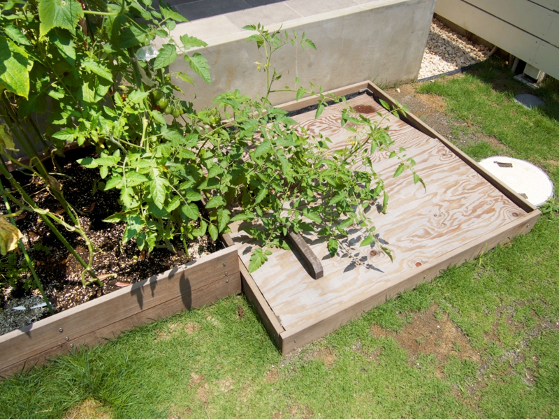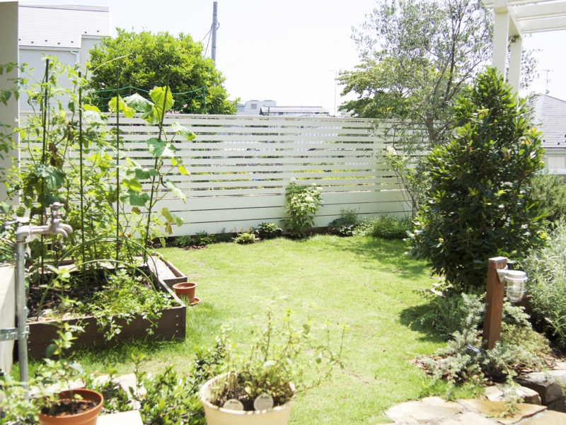 また小さいお子様もお庭を楽しめる様に菜園や砂場を設け芝生を広く取り、夏にはプールも楽しめます。