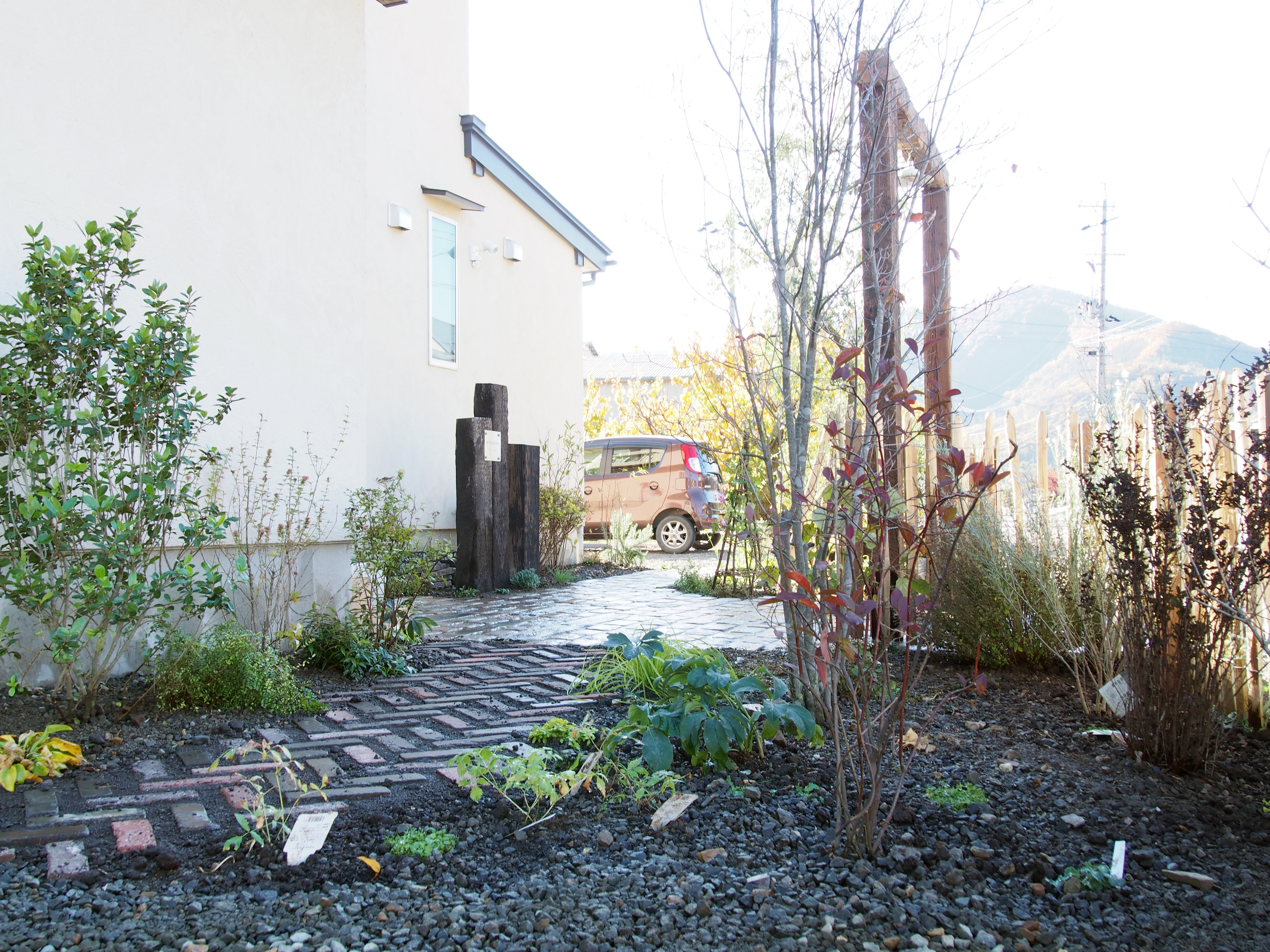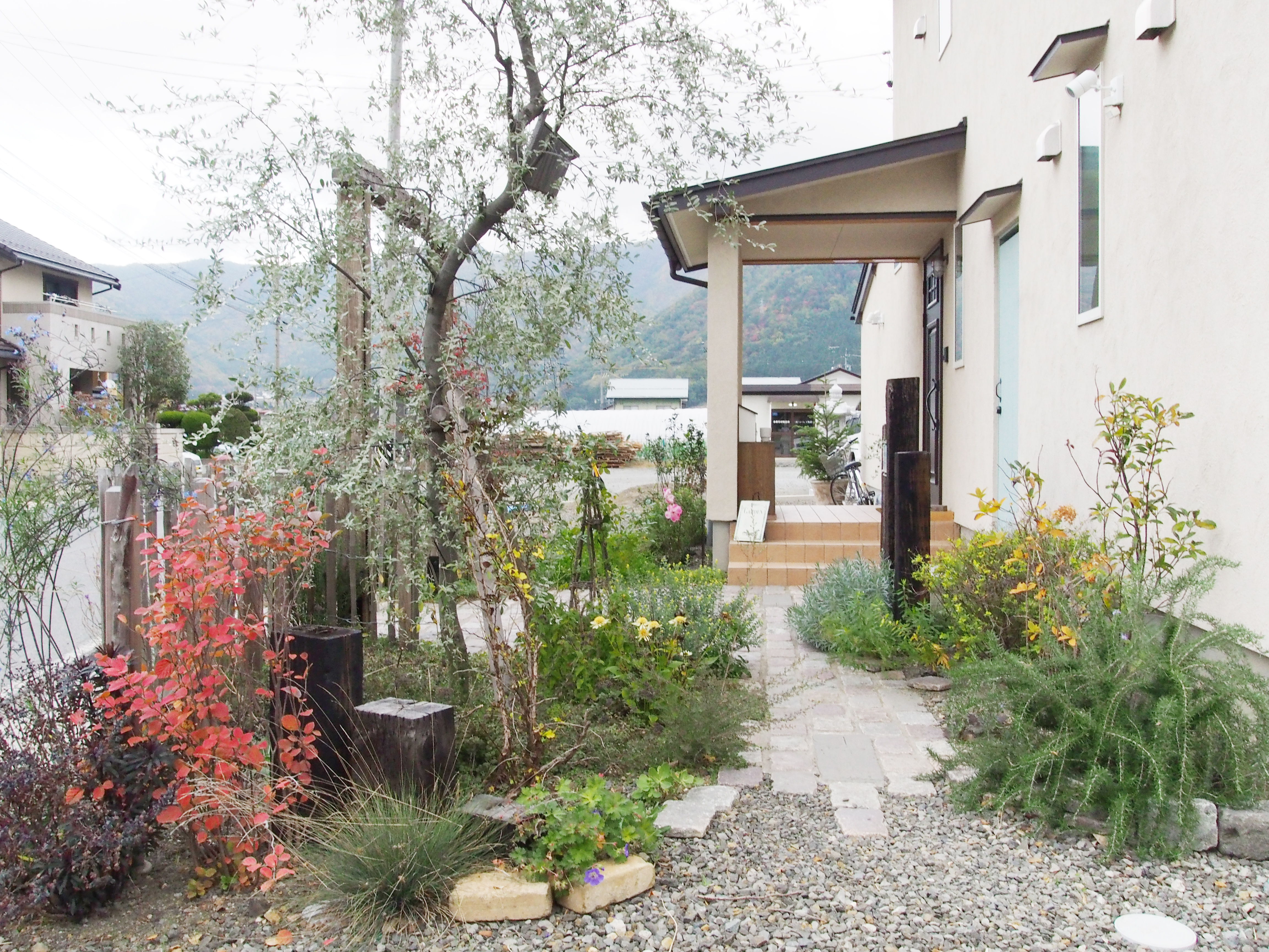 気候を調べると、積雪もあり、関東で使える常緑植物がほとんど使えないエリアだったが、その寒暖差は紅葉の色彩を際立たせるため、宿根植物や落葉木で構成、四季折々の風景が楽しめる。