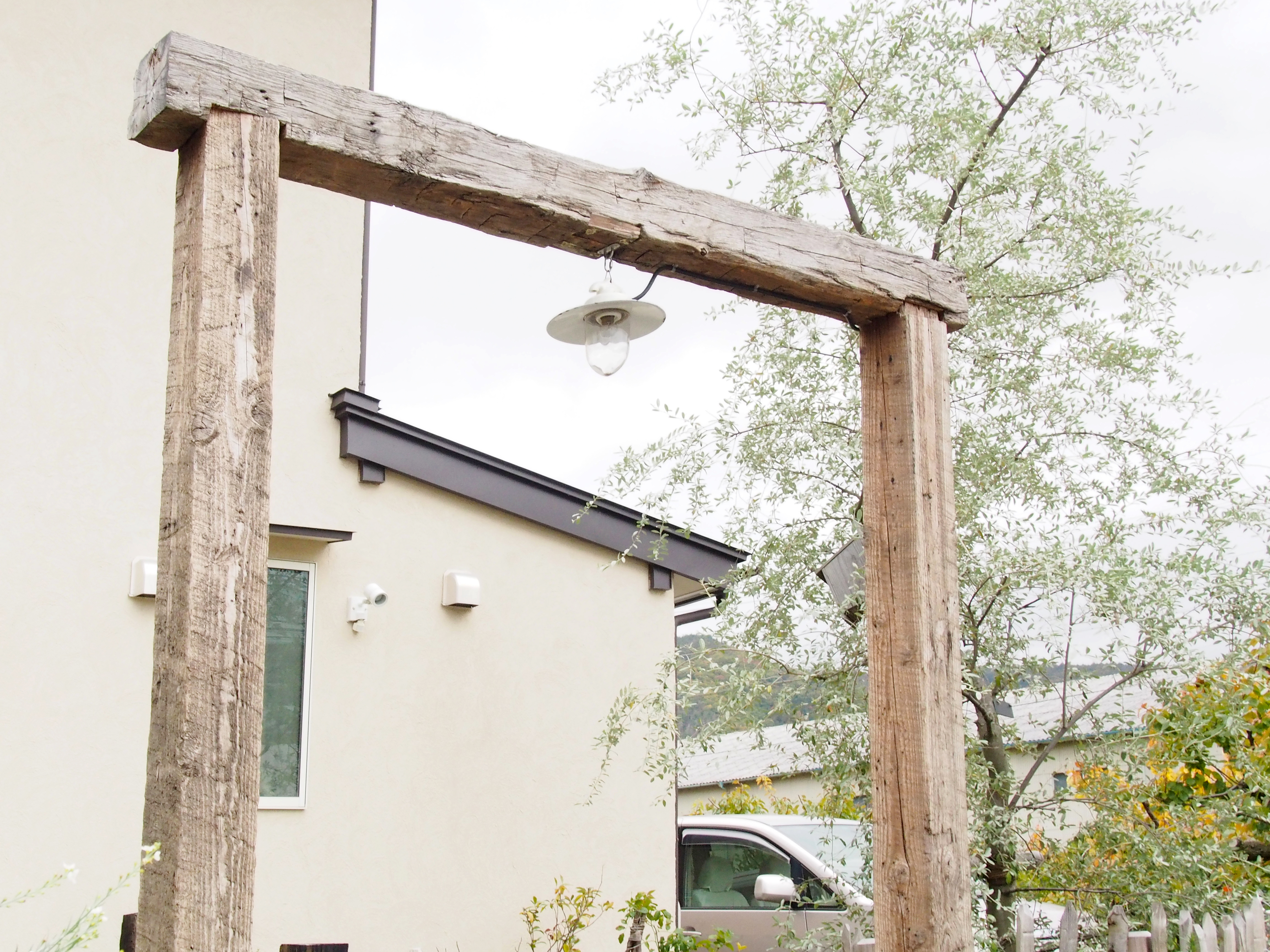 既存は活かし、古木のアーチと栗のフェンスで空間を作った。