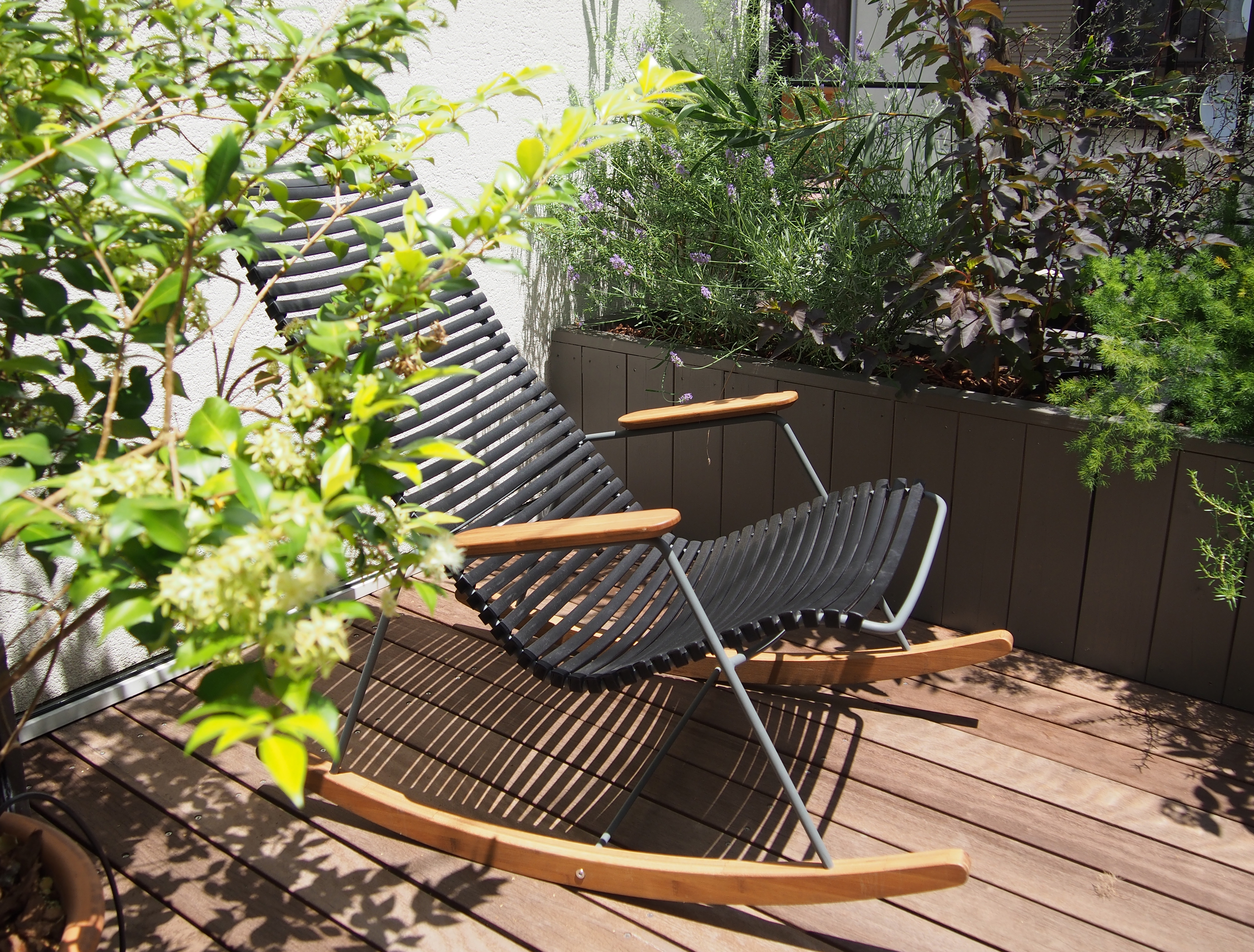 パーゴラには着脱式のタープを着けているので、日差しが強い日でも、