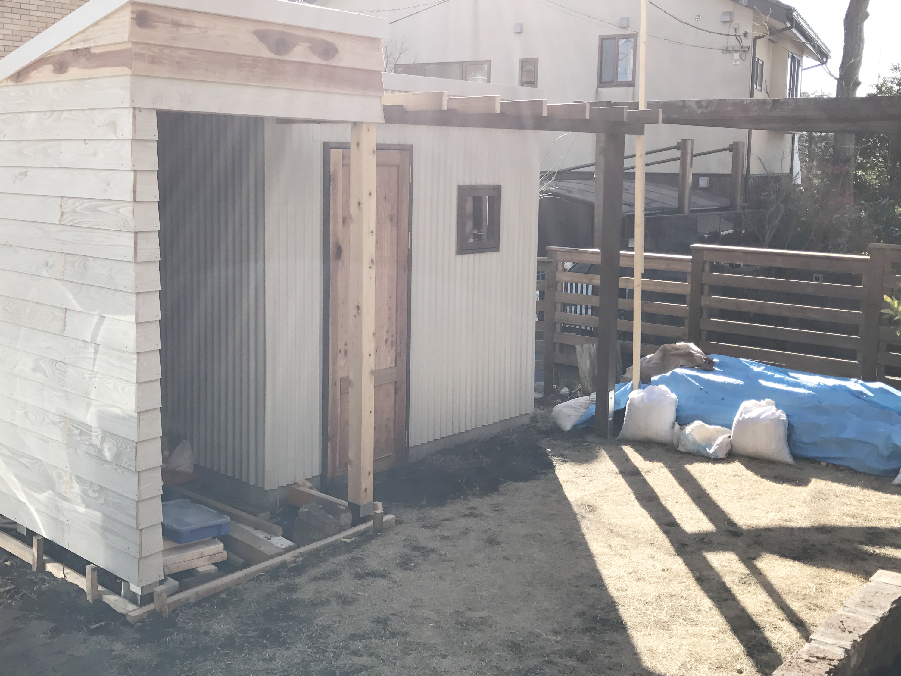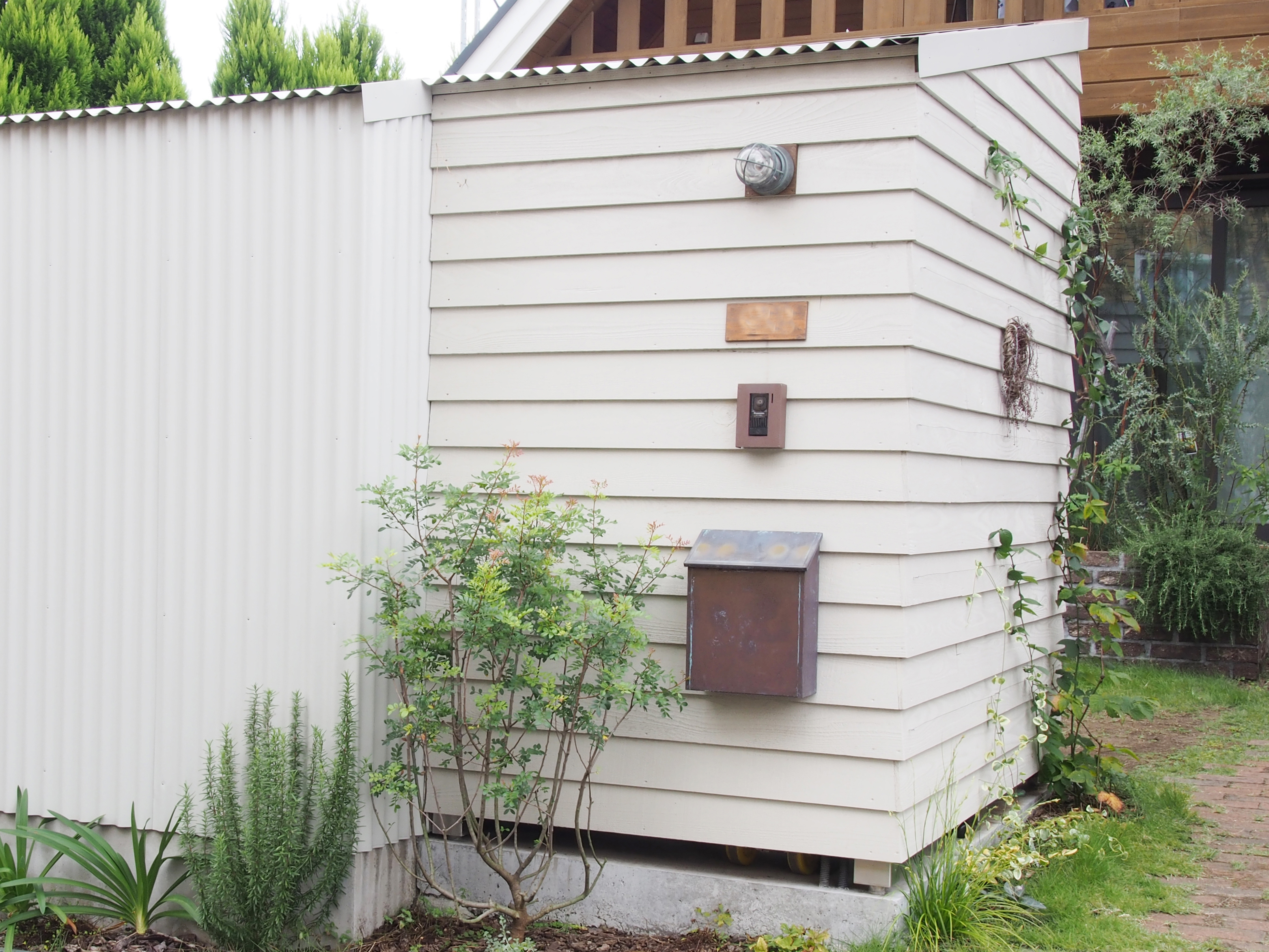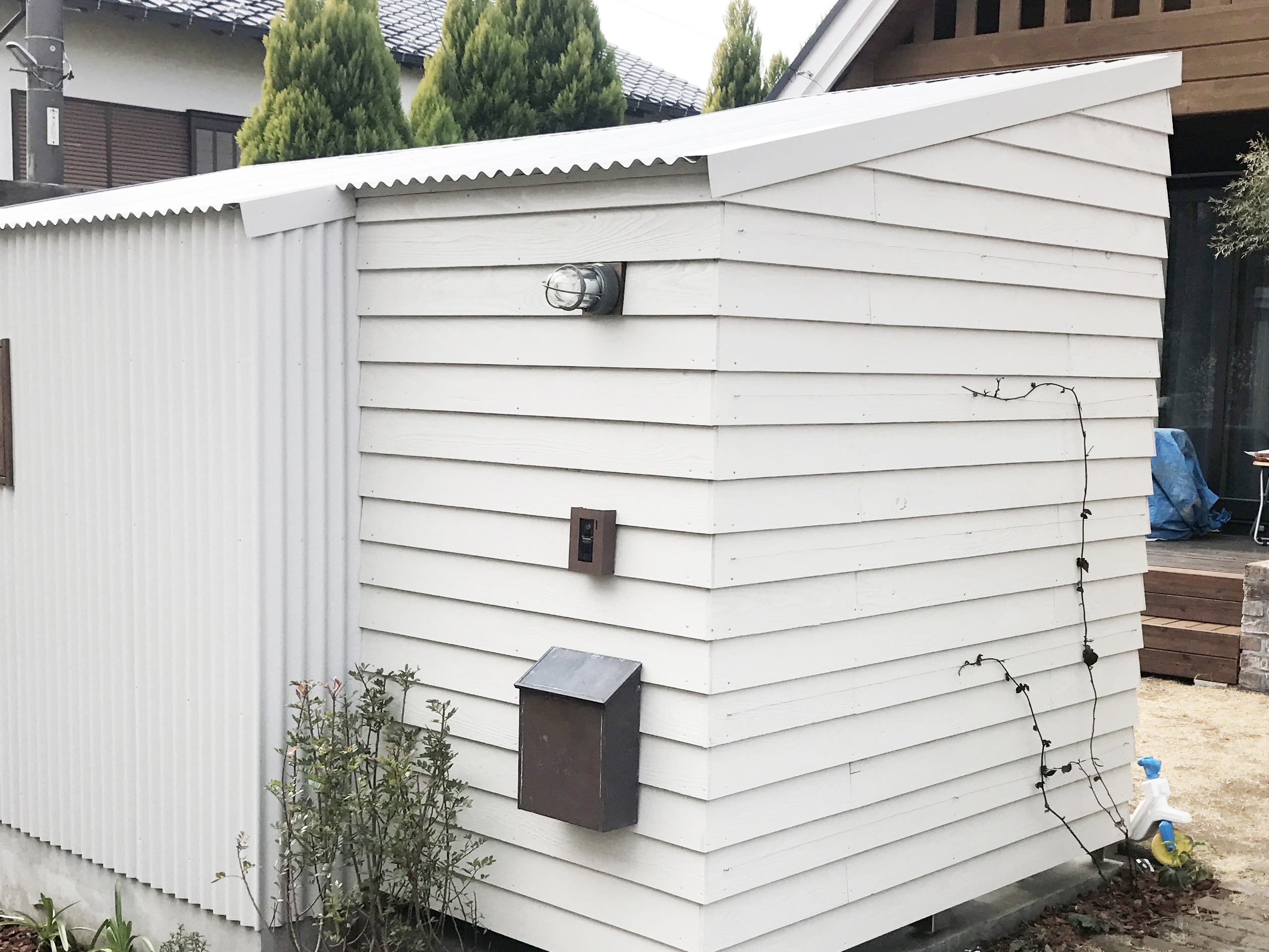 外周を覆うように、駐輪・小屋を配置し視線をカバーしくつろげるスペースが生まれた。デッキにてお茶を愉しんだり、夏にはプールを広げたり子どもたちの良い遊び場にもなっている。